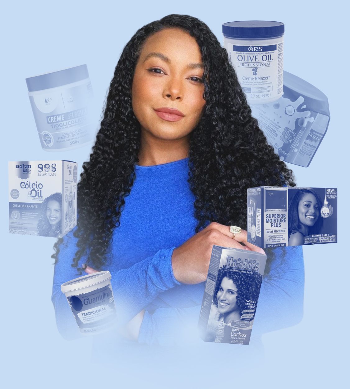 Com o M.Blue, ela entrega o passo a passo prático com tudo o que você precisa para relaxar o cabelo em casa, sem alisar!