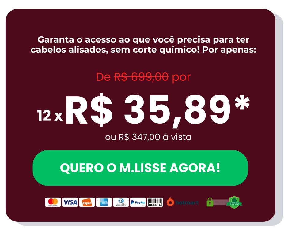 Por isso eu criei o M. Lisse: para te dar o caminho seguro e direto para você alisar o cabelo em casa com resultado de salão.