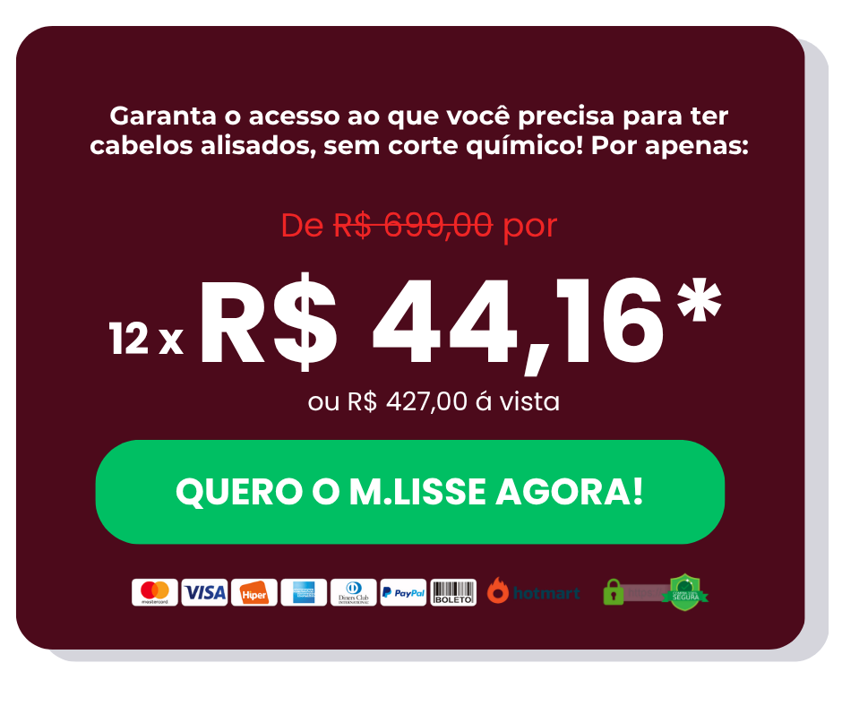 Por isso eu criei o M. Lisse: para te dar o caminho seguro e direto para você alisar o cabelo em casa com resultado de salão.